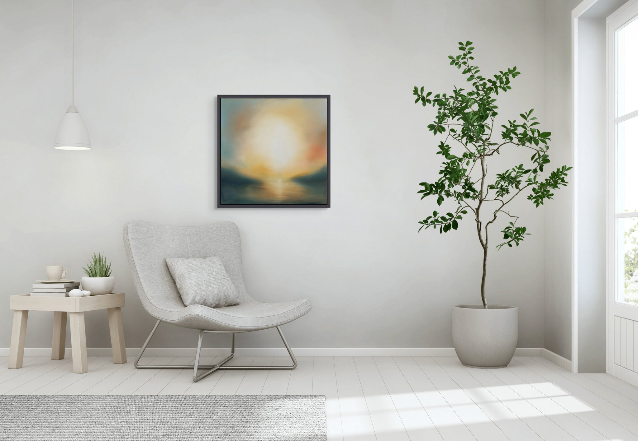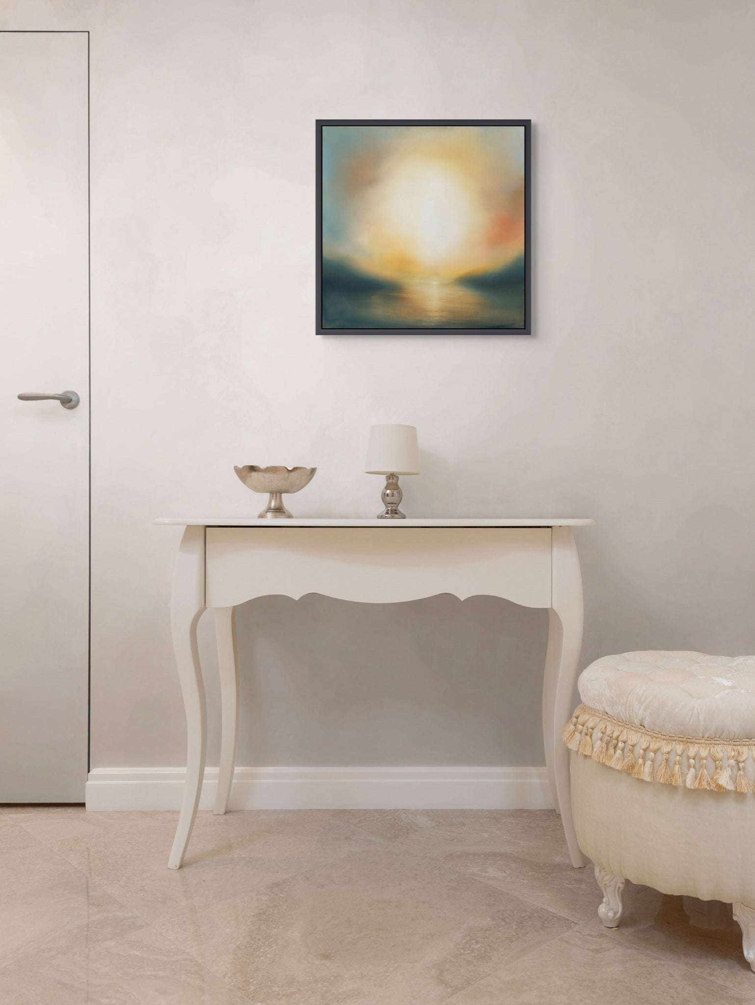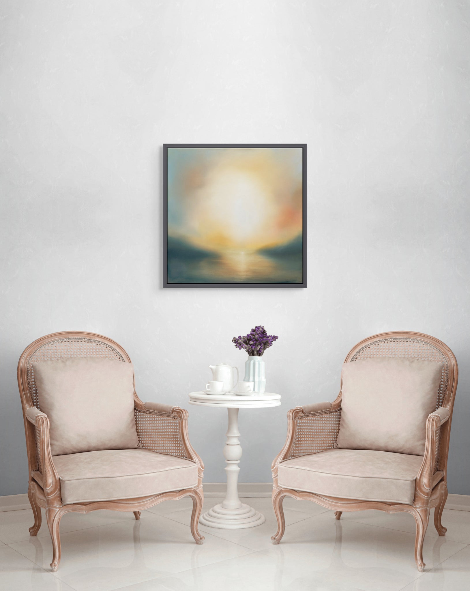 64 x 64 cm, framed, dark brown wooden tray
